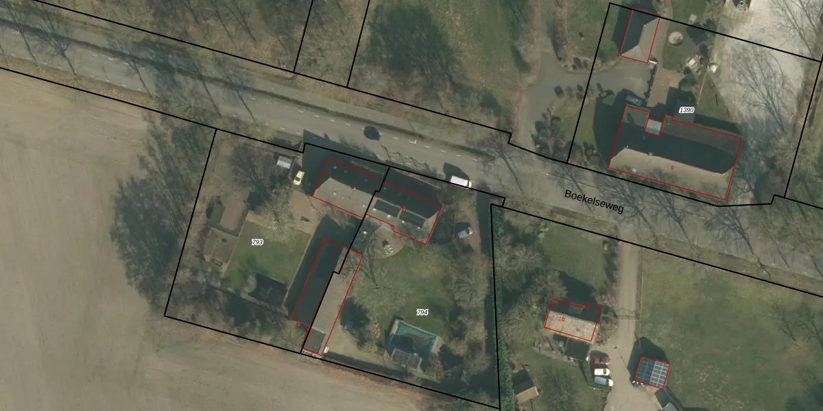 Boekelseweg 8-A is gelegen op kadastraal perceel ERP00R794. Deze kadastrale aanduiding is uniek en wordt gebruikt door het Kadaster om eigendomsrechten en andere zakelijke rechten vast te leggen. Het perceel maakt onderdeel uit van de kadastrale gemeente Erp.