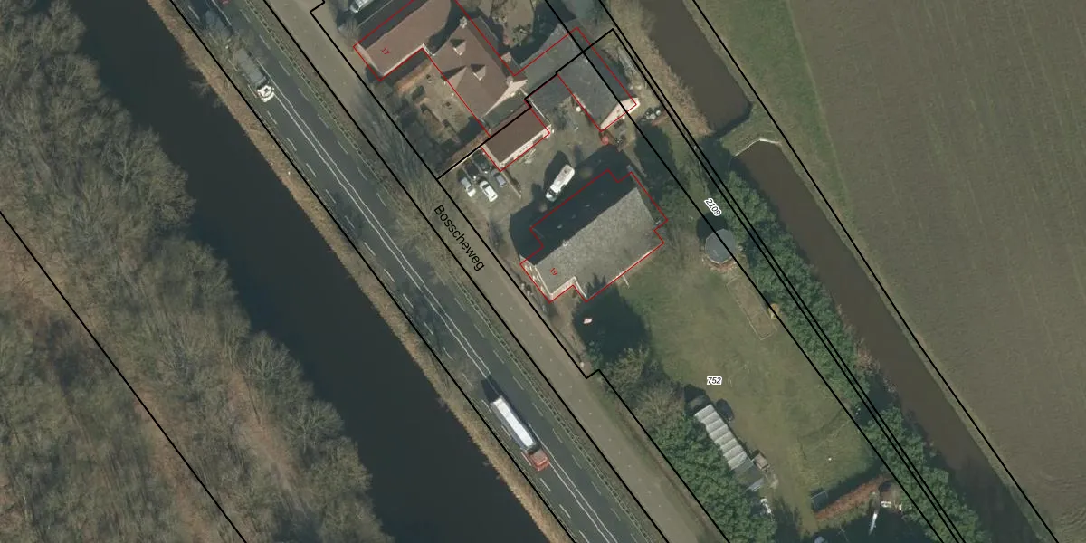 Bosscheweg 19 is gelegen op kadastraal perceel ERP00P752. Deze kadastrale aanduiding is uniek en wordt gebruikt door het Kadaster om eigendomsrechten en andere zakelijke rechten vast te leggen. Het perceel maakt onderdeel uit van de kadastrale gemeente Erp.