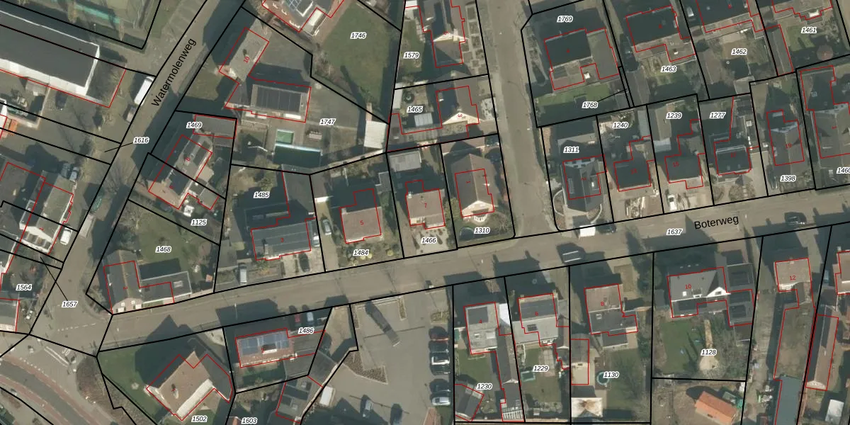 Boterweg 7 is gelegen op kadastraal perceel ERP00E1466. Deze kadastrale aanduiding is uniek en wordt gebruikt door het Kadaster om eigendomsrechten en andere zakelijke rechten vast te leggen. Het perceel maakt onderdeel uit van de kadastrale gemeente Erp.