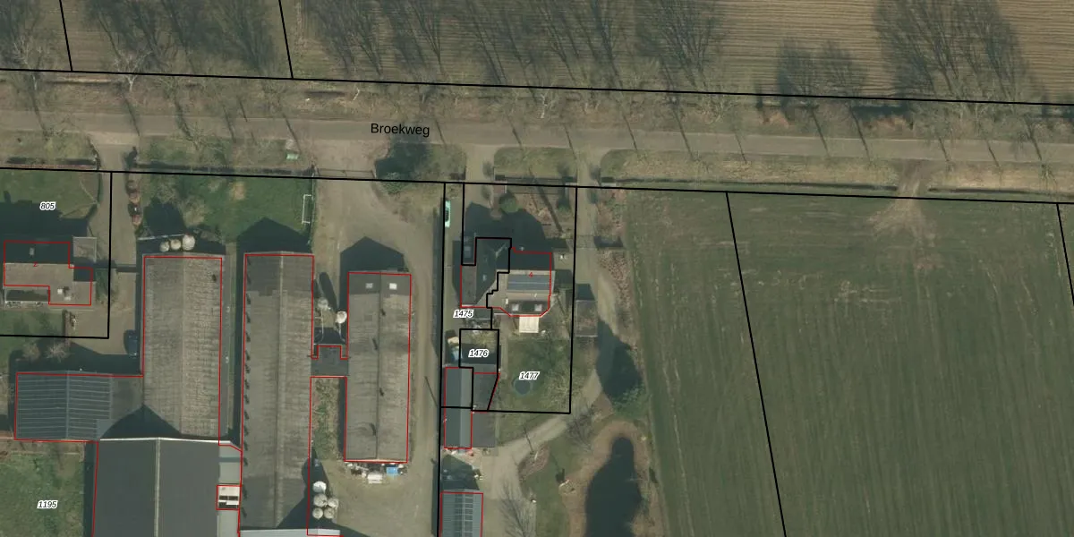 Broekweg 4 is gelegen op kadastraal perceel ERP00S1477. Deze kadastrale aanduiding is uniek en wordt gebruikt door het Kadaster om eigendomsrechten en andere zakelijke rechten vast te leggen. Het perceel maakt onderdeel uit van de kadastrale gemeente Erp.