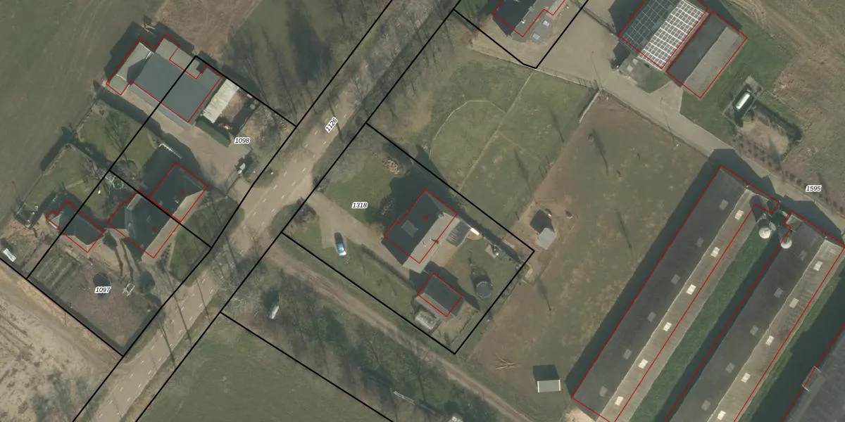 Het perceel waarop het adres ligt is ERP00-S-1318. De afkorting 'ERP00' staat voor kadastrale gemeente Erp. De gemiddelde perceelgrootte in Erp is 6400,62 m². Dit perceel is kleiner: de perceeloppervlakte bedraagt 1595 m². De grootste perceeloppervlakte in de kadastrale gemeente is 1,05 km². De kleinste oppervlakte bedraagt 0 m². Dit is het enige adres dat aanwezig is op het perceel. De huidige grenzen van het perceel zijn digitaal in de Basisregistratie Kadaster (BRK) geregistreerd op 01-07-2009.