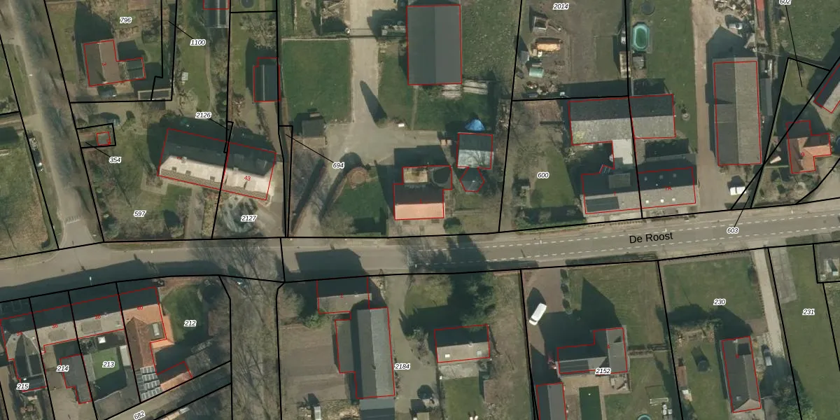 De Roost 1 is gelegen op kadastraal perceel ERP00P2016. Deze kadastrale aanduiding is uniek en wordt gebruikt door het Kadaster om eigendomsrechten en andere zakelijke rechten vast te leggen. Het perceel maakt onderdeel uit van de kadastrale gemeente Erp.