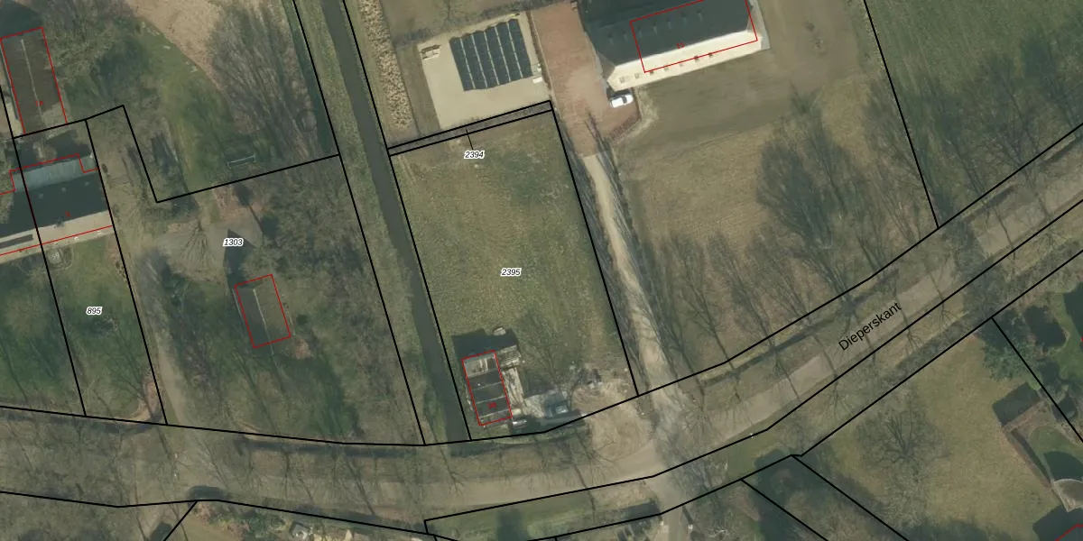 Dieperskant 9-B is gelegen op kadastraal perceel ERP00P2395. Deze kadastrale aanduiding is uniek en wordt gebruikt door het Kadaster om eigendomsrechten en andere zakelijke rechten vast te leggen. Het perceel maakt onderdeel uit van de kadastrale gemeente Erp.