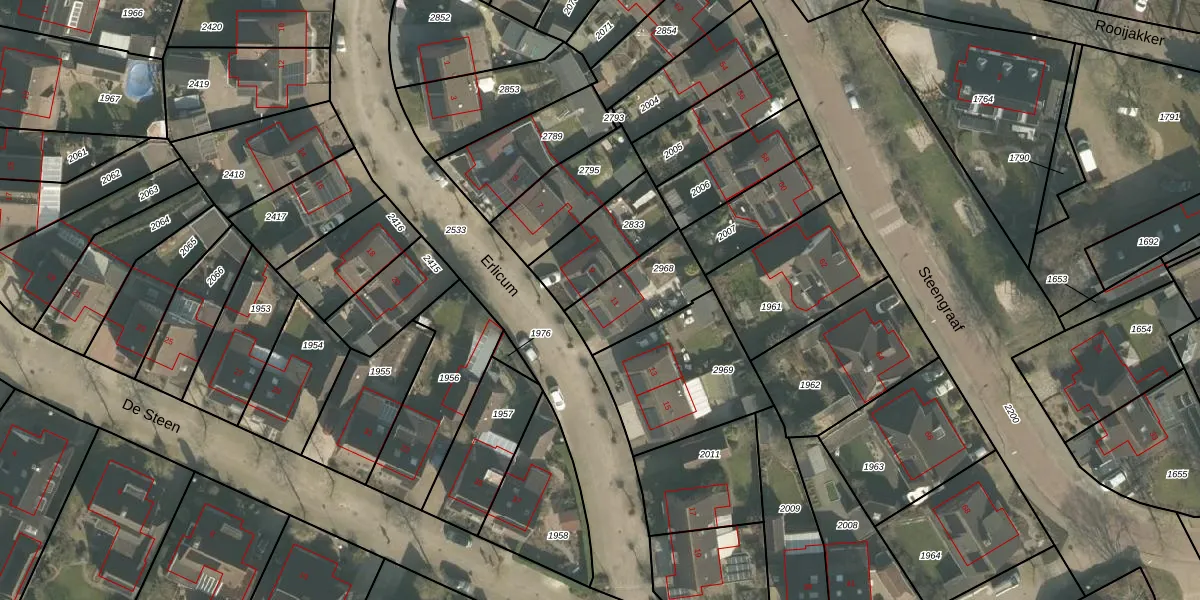 Gebruik de zoekbalk of klik op een perceel voor informatie over de adressen binnen dit perceel.