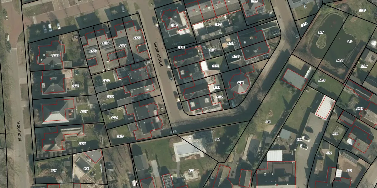 Groenstraat 5 is gelegen op kadastraal perceel ERP00R1123. Deze kadastrale aanduiding is uniek en wordt gebruikt door het Kadaster om eigendomsrechten en andere zakelijke rechten vast te leggen. Het perceel maakt onderdeel uit van de kadastrale gemeente Erp.