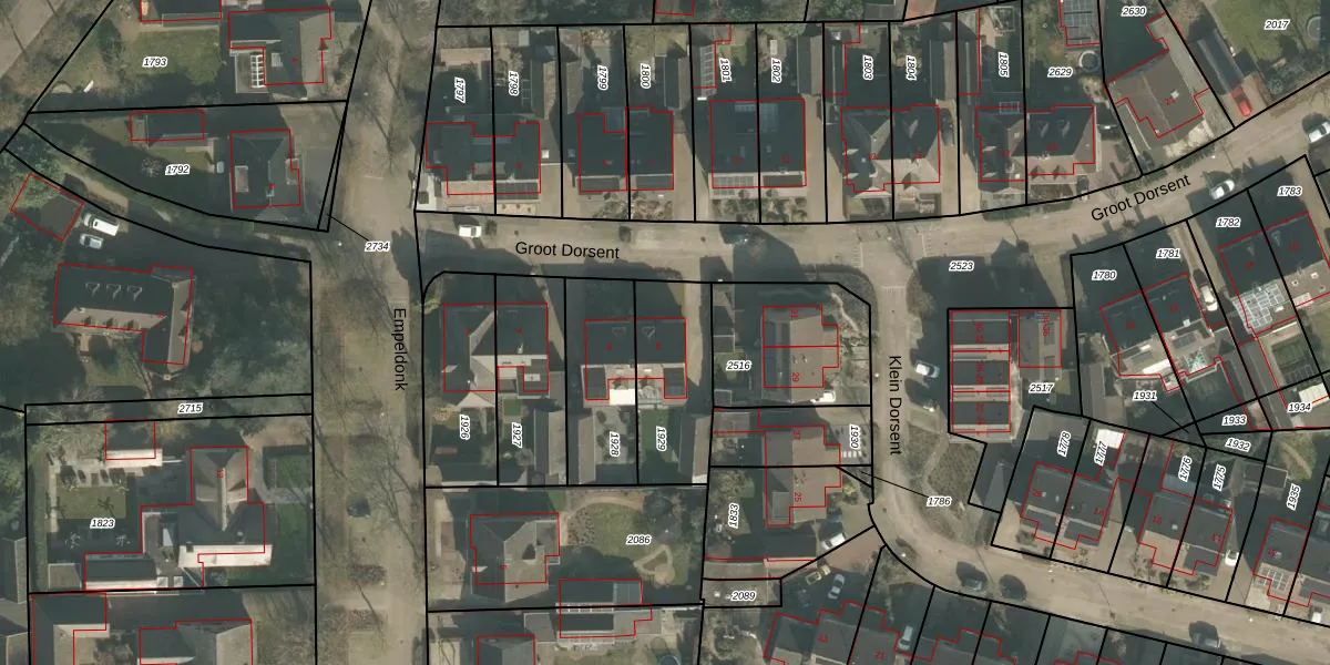 Groot Dorsent 8 is gelegen op kadastraal perceel ERP00M1929. Deze kadastrale aanduiding is uniek en wordt gebruikt door het Kadaster om eigendomsrechten en andere zakelijke rechten vast te leggen. Het perceel maakt onderdeel uit van de kadastrale gemeente Erp.