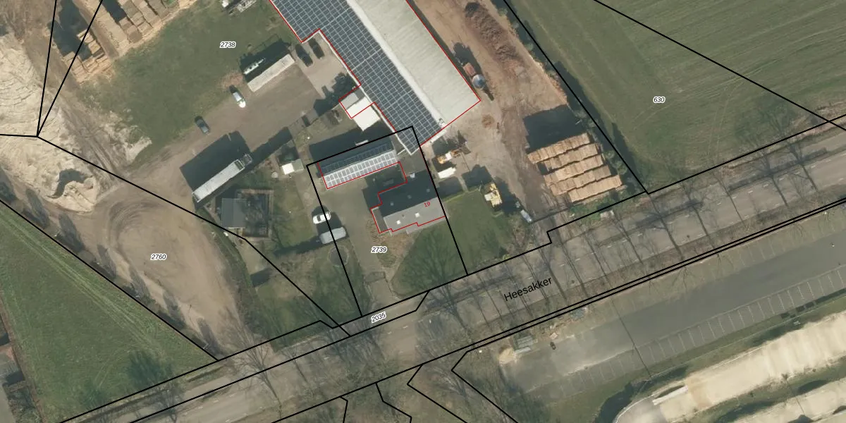 Heesakker 19 is gelegen op kadastraal perceel ERP00M2739. Deze kadastrale aanduiding is uniek en wordt gebruikt door het Kadaster om eigendomsrechten en andere zakelijke rechten vast te leggen. Het perceel maakt onderdeel uit van de kadastrale gemeente Erp.