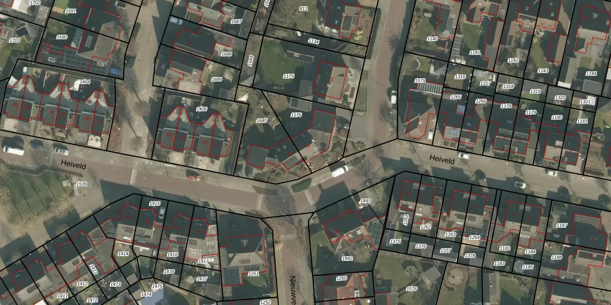 Het perceel waarop Heiveld 16 staat heeft een oppervlakte van 429 m². Dit is een groot perceel. De perceeloppervlakte wordt geregistreerd door het Kadaster. Gedetailleerde informatie over de maten van dit perceel kunt u vinden in het rapport Kadastrale kaart met maatvoering van Heiveld 16.