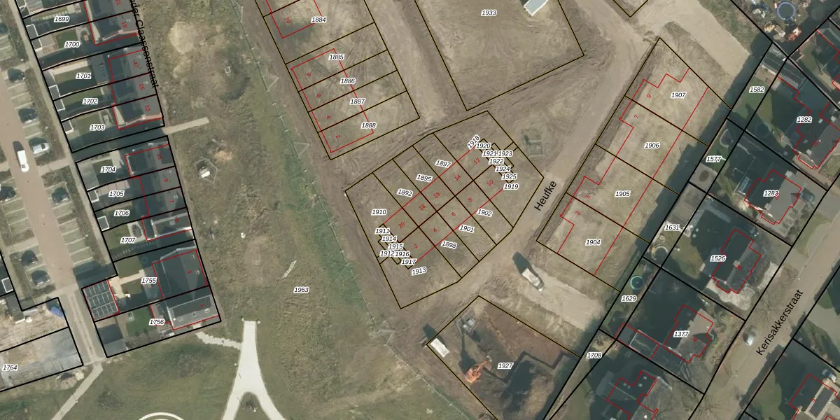 Het perceel waarop Heufke 18 staat heeft een oppervlakte van 95 m². Dit is een klein perceel. De perceeloppervlakte wordt geregistreerd door het Kadaster. Gedetailleerde informatie over de maten van dit perceel kunt u vinden in het rapport Kadastrale kaart met maatvoering van Heufke 18.
