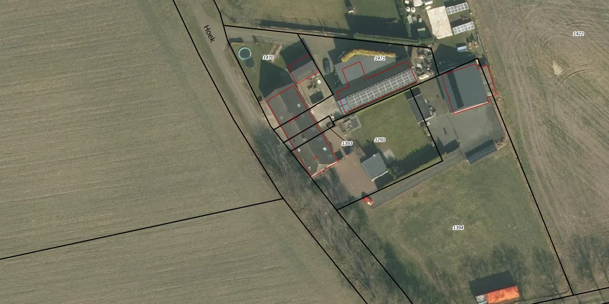 Hoek 19 is gelegen op kadastraal perceel ERP00S1250. Deze kadastrale aanduiding is uniek en wordt gebruikt door het Kadaster om eigendomsrechten en andere zakelijke rechten vast te leggen. Het perceel maakt onderdeel uit van de kadastrale gemeente Erp.