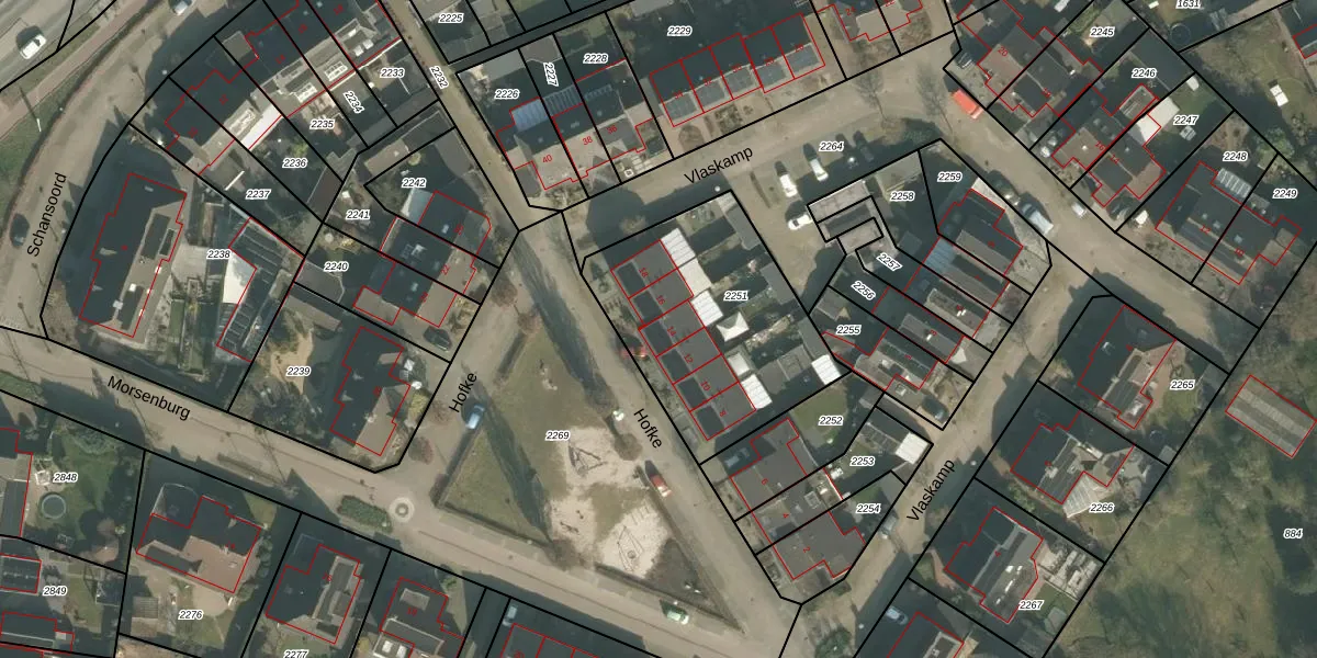 Het perceel waarop het adres ligt is ERP00-M-2251. De afkorting 'ERP00' staat voor kadastrale gemeente Erp. Het perceel is 902 m² groot. Dat is kleiner dan de gemiddelde perceeloppervlakte in Erp, dat op 6398,33 m² ligt. De grootste perceeloppervlakte in de kadastrale gemeente is 1,05 km². De kleinste oppervlakte bedraagt 0 m². Op het perceel liggen in totaal 6 adressen. De huidige grenzen van het perceel zijn digitaal in de Basisregistratie Kadaster (BRK) geregistreerd op 22-03-2005.