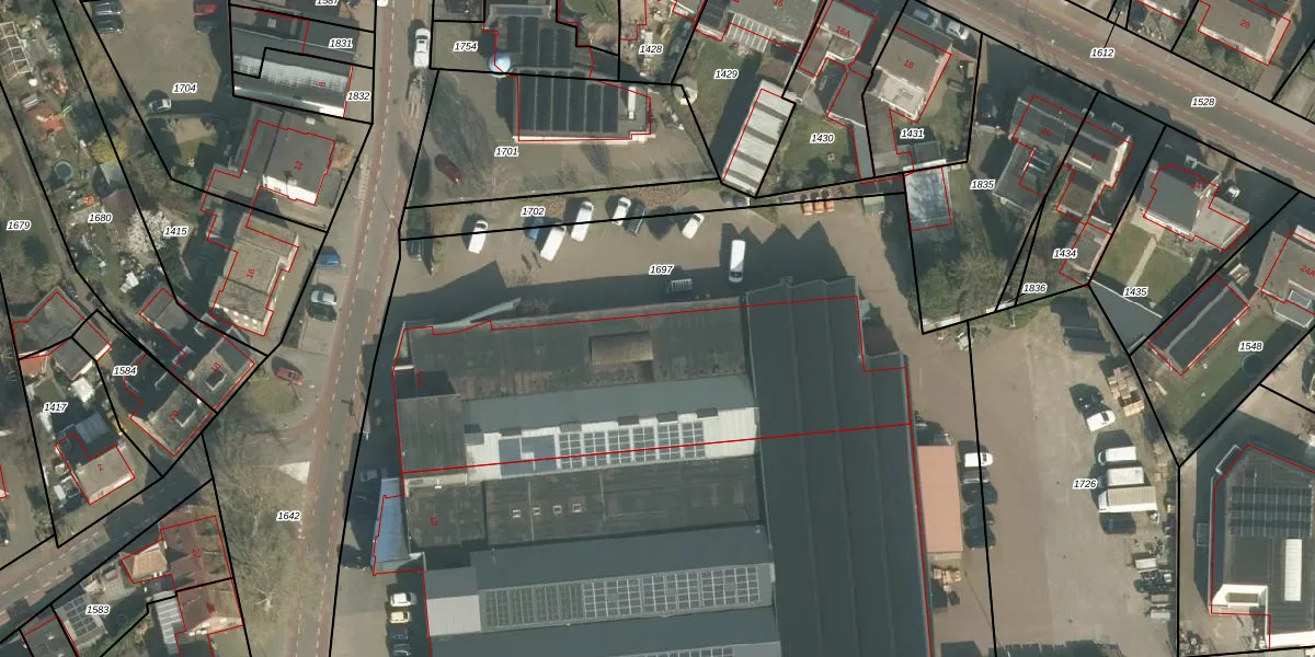 Het perceel waarop het adres ligt is ERP00-E-1697. De afkorting 'ERP00' staat voor kadastrale gemeente Erp. Het perceel is met 6920 m² relatief groot. Het gemiddelde ligt in de kadastrale gemeente Erp op 6398,33 m². Het kleinste perceel in de kadastrale gemeente is 0 m² groot. De grootste perceeloppervlakte is 1,05 km². Op het perceel liggen in totaal 4 adressen. De laatste wijziging in het de Basisregistratie Kadaster (BRK) was op 20-09-2006.