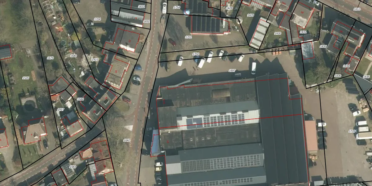 Het perceel waarop het adres ligt is ERP00-E-1697. De afkorting 'ERP00' staat voor kadastrale gemeente Erp. Het perceel is met 6920 m² relatief groot. Het gemiddelde ligt in de kadastrale gemeente Erp op 6400,62 m². Het kleinste perceel in de kadastrale gemeente is 0 m² groot. De grootste perceeloppervlakte is 1,05 km². Op het perceel liggen in totaal 4 adressen. In de Basisregistratie Kadaster (BRK) werden de grenzen van het perceel geregistreerd op 20-09-2006.