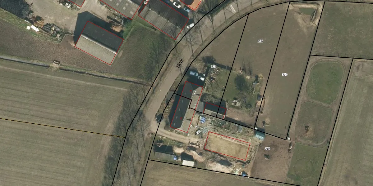 Het perceel waarop Hool 19 staat heeft een oppervlakte van 935 m². Dit is een groot perceel. De perceeloppervlakte wordt geregistreerd door het Kadaster. Gedetailleerde informatie over de maten van dit perceel kunt u vinden in het rapport Kadastrale kaart met maatvoering van Hool 19.