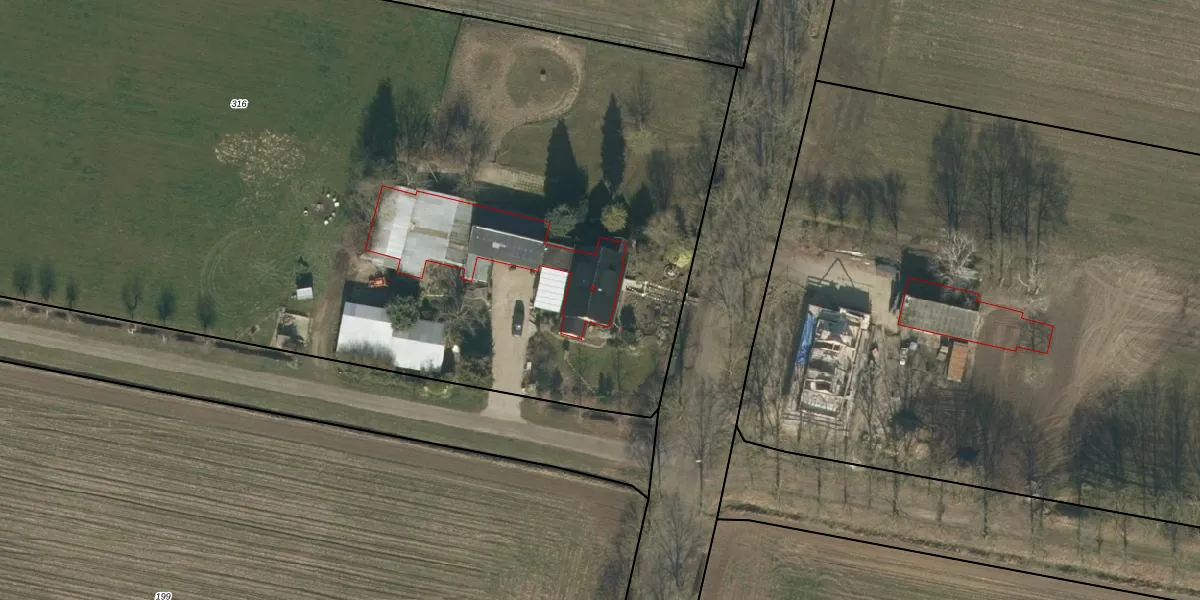 Het perceel waarop het adres ligt is ERP00-N-316. De afkorting 'ERP00' staat voor kadastrale gemeente Erp. Het perceel is met 8695 m² relatief groot. Het gemiddelde ligt in de kadastrale gemeente Erp op 6400,62 m². Het kleinste perceel in de kadastrale gemeente is 0 m² groot. De grootste perceeloppervlakte is 1,05 km². Er zijn geen andere adressen aanwezig op het perceel. De huidige grenzen van het perceel zijn digitaal in de Basisregistratie Kadaster (BRK) geregistreerd op 28-03-2014.