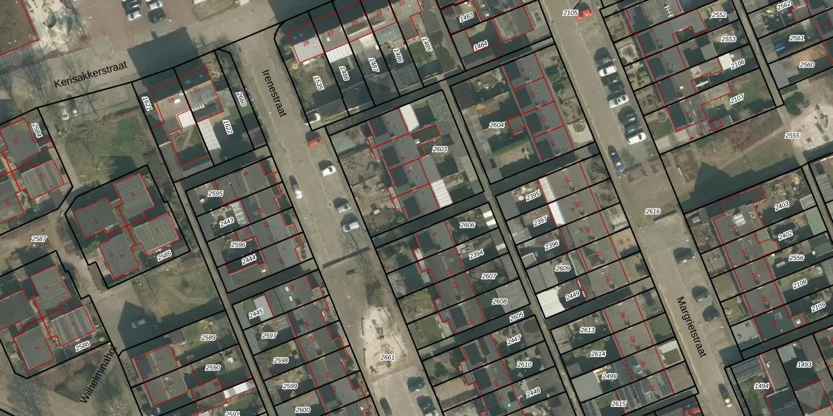Irenestraat 7 is gelegen op kadastraal perceel ERP00M2603. Deze kadastrale aanduiding is uniek en wordt gebruikt door het Kadaster om eigendomsrechten en andere zakelijke rechten vast te leggen. Het perceel maakt onderdeel uit van de kadastrale gemeente Erp.