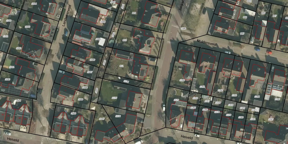 Jonkerveld 12 is gelegen op kadastraal perceel ERP00P811. Deze kadastrale aanduiding is uniek en wordt gebruikt door het Kadaster om eigendomsrechten en andere zakelijke rechten vast te leggen. Het perceel maakt onderdeel uit van de kadastrale gemeente Erp.