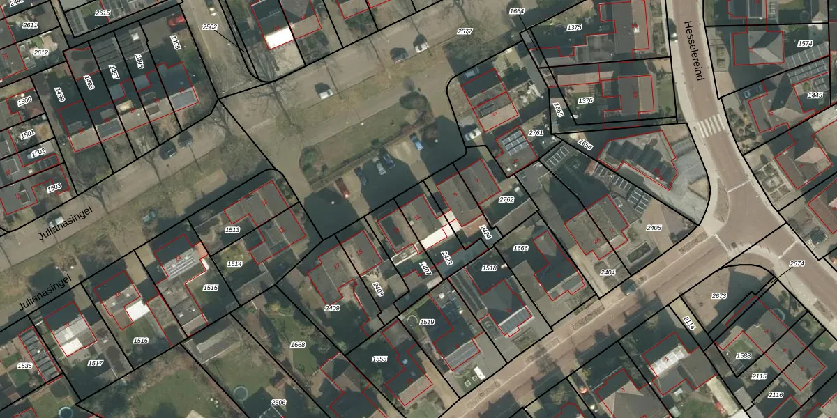 Julianasingel 11 is gelegen op kadastraal perceel ERP00M2423. Deze kadastrale aanduiding is uniek en wordt gebruikt door het Kadaster om eigendomsrechten en andere zakelijke rechten vast te leggen. Het perceel maakt onderdeel uit van de kadastrale gemeente Erp.