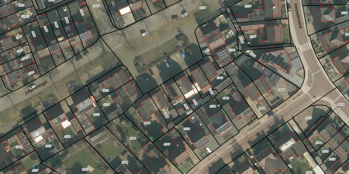 Julianasingel 13 is gelegen op kadastraal perceel ERP00M2407. Deze kadastrale aanduiding is uniek en wordt gebruikt door het Kadaster om eigendomsrechten en andere zakelijke rechten vast te leggen. Het perceel maakt onderdeel uit van de kadastrale gemeente Erp.