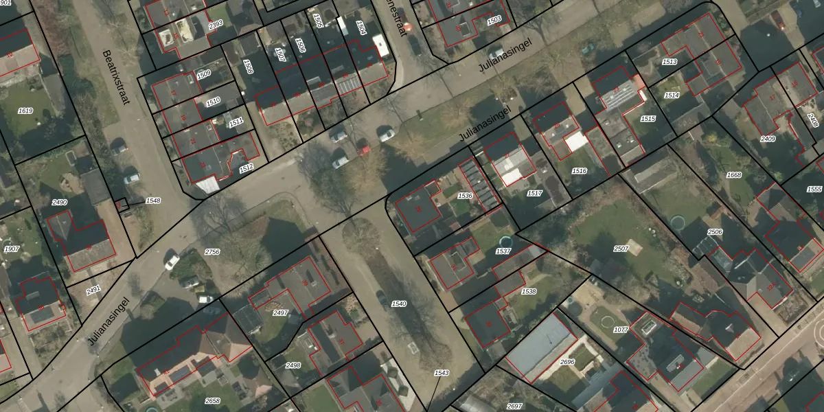 Julianasingel 29 is gelegen op kadastraal perceel ERP00M1536. Deze kadastrale aanduiding is uniek en wordt gebruikt door het Kadaster om eigendomsrechten en andere zakelijke rechten vast te leggen. Het perceel maakt onderdeel uit van de kadastrale gemeente Erp.