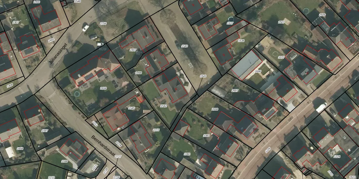 Het perceel waarop Julianasingel 35 staat heeft een oppervlakte van 629 m². Dit is een groot perceel. De perceeloppervlakte wordt geregistreerd door het Kadaster. Gedetailleerde informatie over de maten van dit perceel kunt u vinden in het rapport Kadastrale kaart met maatvoering van Julianasingel 35.