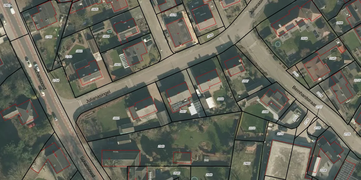 Het perceel waarop Julianasingel 47 staat heeft een oppervlakte van 494 m². Dit is een groot perceel. De perceeloppervlakte wordt geregistreerd door het Kadaster. Gedetailleerde informatie over de maten van dit perceel kunt u vinden in het rapport Kadastrale kaart met maatvoering van Julianasingel 47.