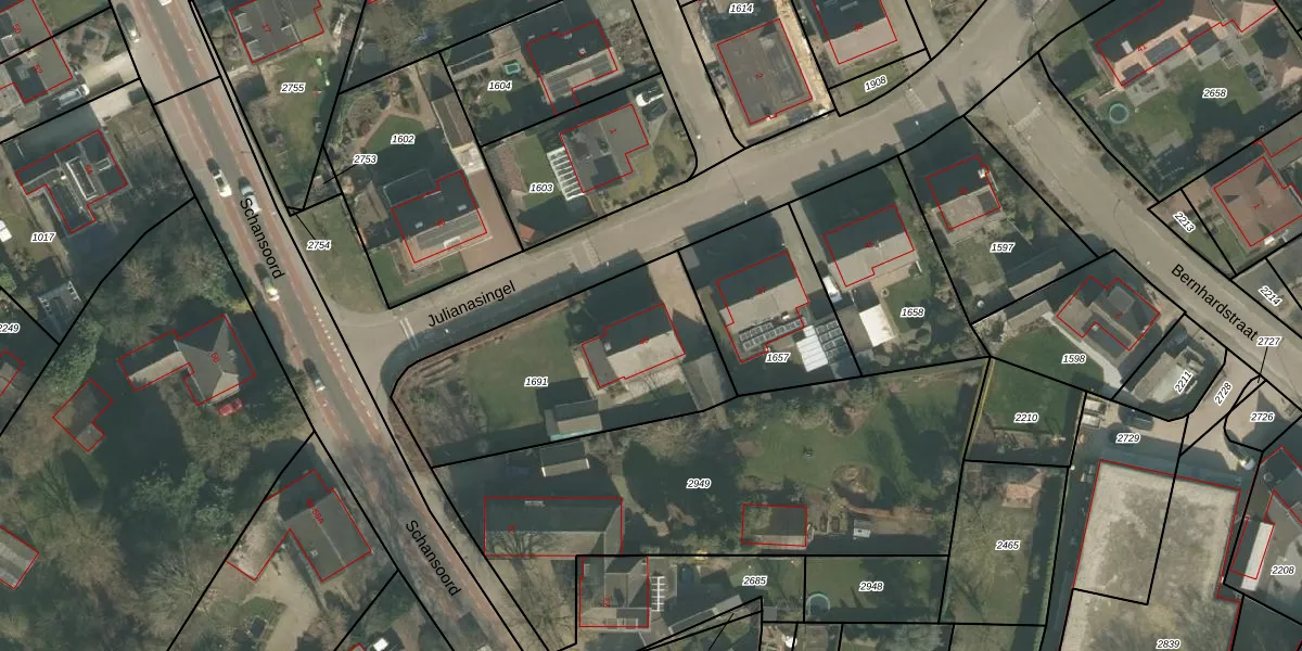 Gebruik de zoekbalk of klik op een perceel voor informatie over de adressen binnen dit perceel.