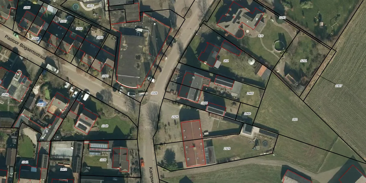 Het perceel waarop het adres ligt is ERP00-P-1944. De afkorting 'ERP00' staat voor kadastrale gemeente Erp. De gemiddelde perceelgrootte in Erp is 6400,62 m². Dit perceel is kleiner: de perceeloppervlakte bedraagt 405 m². Het grootste perceel in de kadastrale gemeente is 1,05 km². Het kleinste perceel heeft een oppervlakte van 0 m². Dit is het enige adres dat aanwezig is op het perceel. De huidige grenzen van het perceel zijn digitaal in de Basisregistratie Kadaster (BRK) geregistreerd op 05-01-2024.
