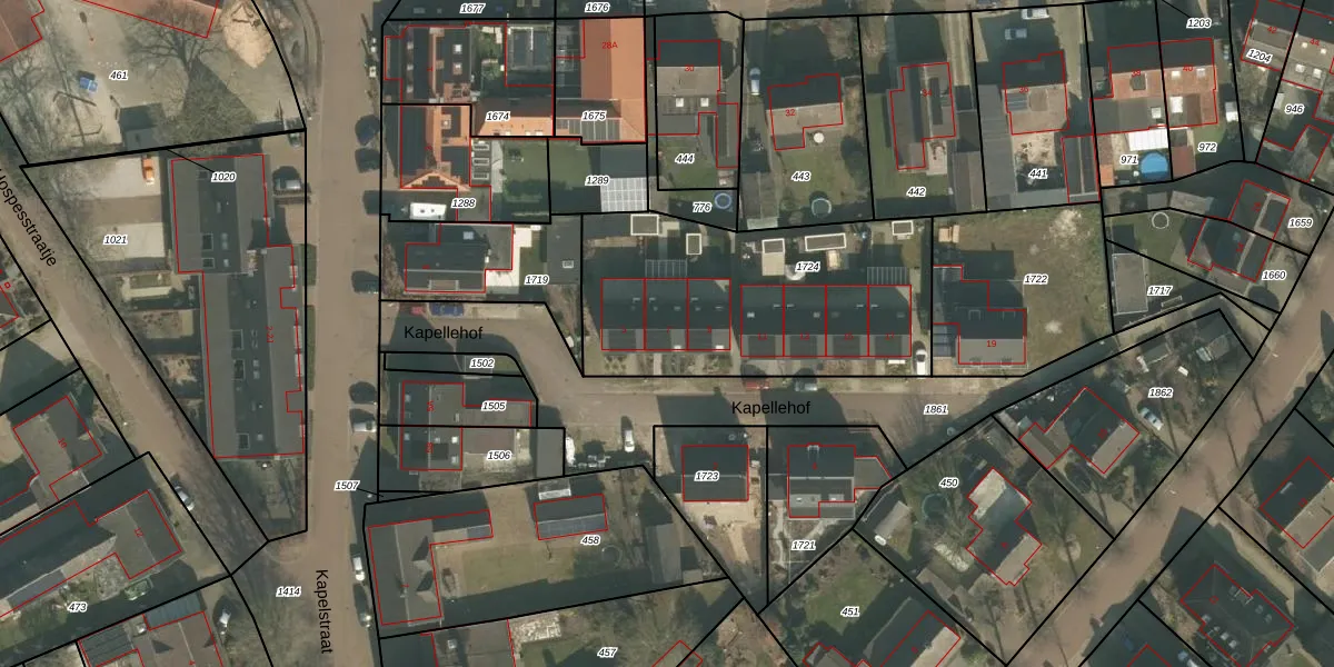 Kapellehof 7 is gelegen op kadastraal perceel ERP00S1724. Deze kadastrale aanduiding is uniek en wordt gebruikt door het Kadaster om eigendomsrechten en andere zakelijke rechten vast te leggen. Het perceel maakt onderdeel uit van de kadastrale gemeente Erp.