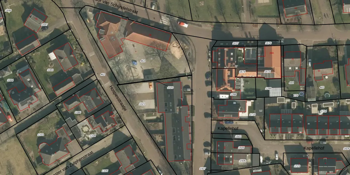 Kapelstraat 2 is gelegen op kadastraal perceel ERP00S1021. Deze kadastrale aanduiding is uniek en wordt gebruikt door het Kadaster om eigendomsrechten en andere zakelijke rechten vast te leggen. Het perceel maakt onderdeel uit van de kadastrale gemeente Erp.