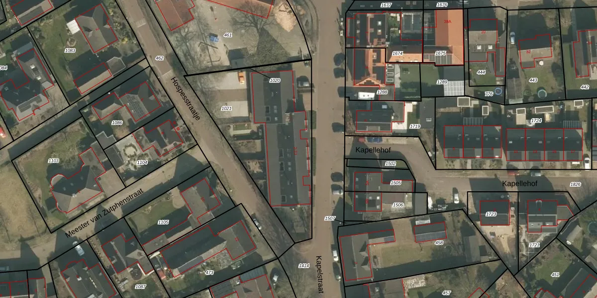 Kapelstraat 2-E is gelegen op kadastraal perceel ERP00S1021. Deze kadastrale aanduiding is uniek en wordt gebruikt door het Kadaster om eigendomsrechten en andere zakelijke rechten vast te leggen. Het perceel maakt onderdeel uit van de kadastrale gemeente Erp.