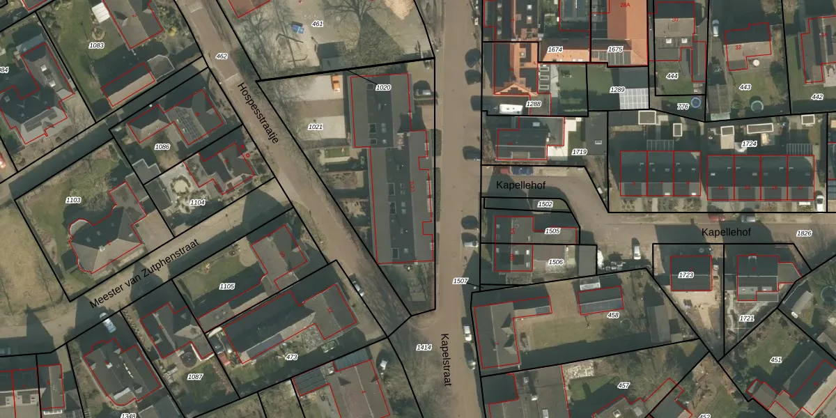 Het perceel waarop Kapelstraat 2-F staat heeft een oppervlakte van 1471 m². Dit is een zeer groot perceel. De perceeloppervlakte wordt geregistreerd door het Kadaster. Gedetailleerde informatie over de maten van dit perceel kunt u vinden in het rapport Kadastrale kaart met maatvoering van Kapelstraat 2-F.