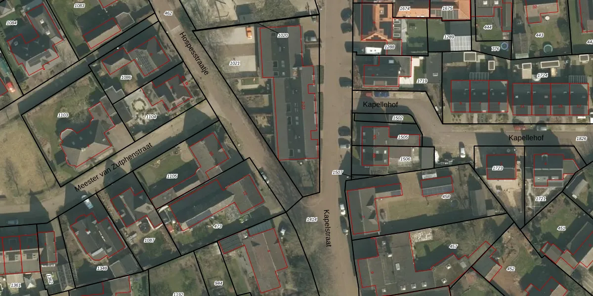Het perceel waarop Kapelstraat 2-H staat heeft een oppervlakte van 1471 m². Dit is een zeer groot perceel. De perceeloppervlakte wordt geregistreerd door het Kadaster. Gedetailleerde informatie over de maten van dit perceel kunt u vinden in het rapport Kadastrale kaart met maatvoering van Kapelstraat 2-H.