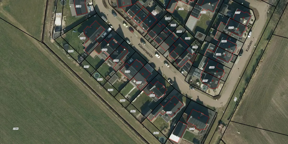 Klaverweide 48 is gelegen op kadastraal perceel ERP00P2177. Deze kadastrale aanduiding is uniek en wordt gebruikt door het Kadaster om eigendomsrechten en andere zakelijke rechten vast te leggen. Het perceel maakt onderdeel uit van de kadastrale gemeente Erp.
