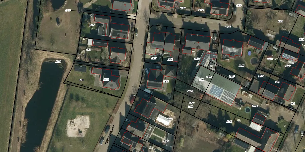 Klaverweide 9 is gelegen op kadastraal perceel ERP00P1902. Deze kadastrale aanduiding is uniek en wordt gebruikt door het Kadaster om eigendomsrechten en andere zakelijke rechten vast te leggen. Het perceel maakt onderdeel uit van de kadastrale gemeente Erp.