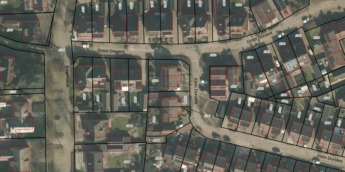 Klein Dorsent 29 is gelegen op kadastraal perceel ERP00M2516. Deze kadastrale aanduiding is uniek en wordt gebruikt door het Kadaster om eigendomsrechten en andere zakelijke rechten vast te leggen. Het perceel maakt onderdeel uit van de kadastrale gemeente Erp.