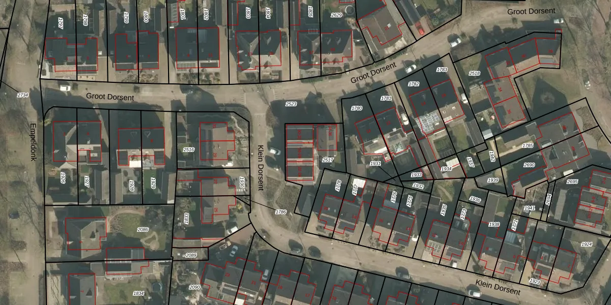 Klein Dorsent 32 is gelegen op kadastraal perceel ERP00M2517. Deze kadastrale aanduiding is uniek en wordt gebruikt door het Kadaster om eigendomsrechten en andere zakelijke rechten vast te leggen. Het perceel maakt onderdeel uit van de kadastrale gemeente Erp.