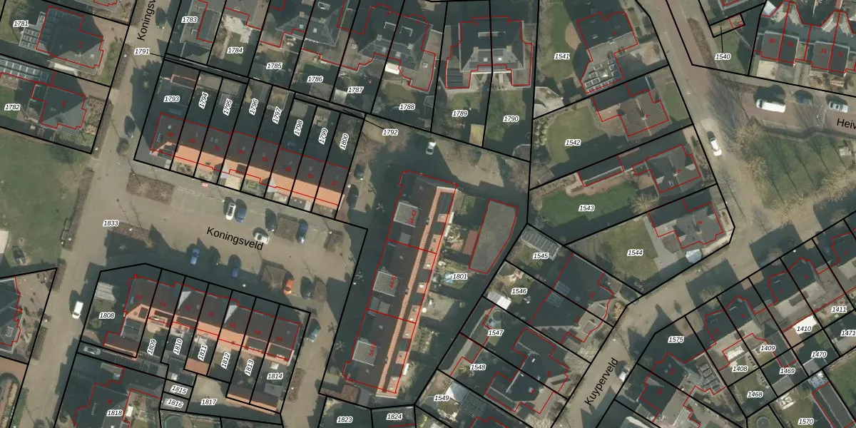 Koningsveld 42 is gelegen op kadastraal perceel ERP00P1801. Deze kadastrale aanduiding is uniek en wordt gebruikt door het Kadaster om eigendomsrechten en andere zakelijke rechten vast te leggen. Het perceel maakt onderdeel uit van de kadastrale gemeente Erp.