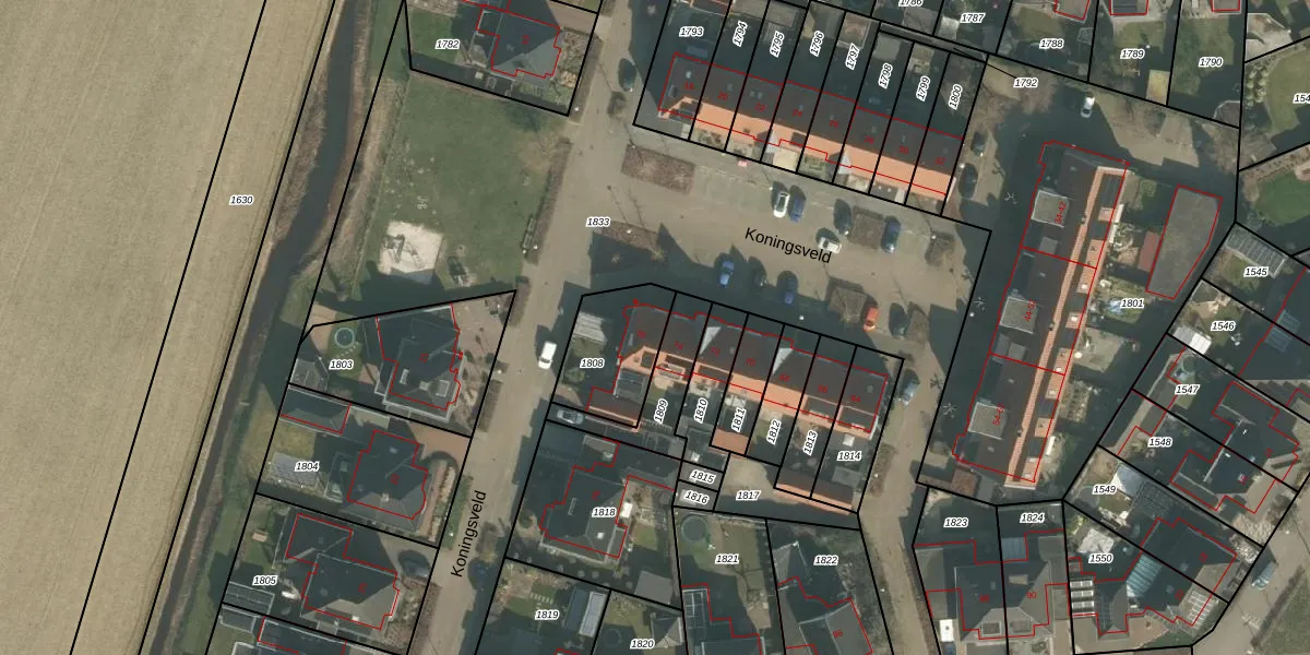 Koningsveld 76 is gelegen op kadastraal perceel ERP00P1808. Deze kadastrale aanduiding is uniek en wordt gebruikt door het Kadaster om eigendomsrechten en andere zakelijke rechten vast te leggen. Het perceel maakt onderdeel uit van de kadastrale gemeente Erp.