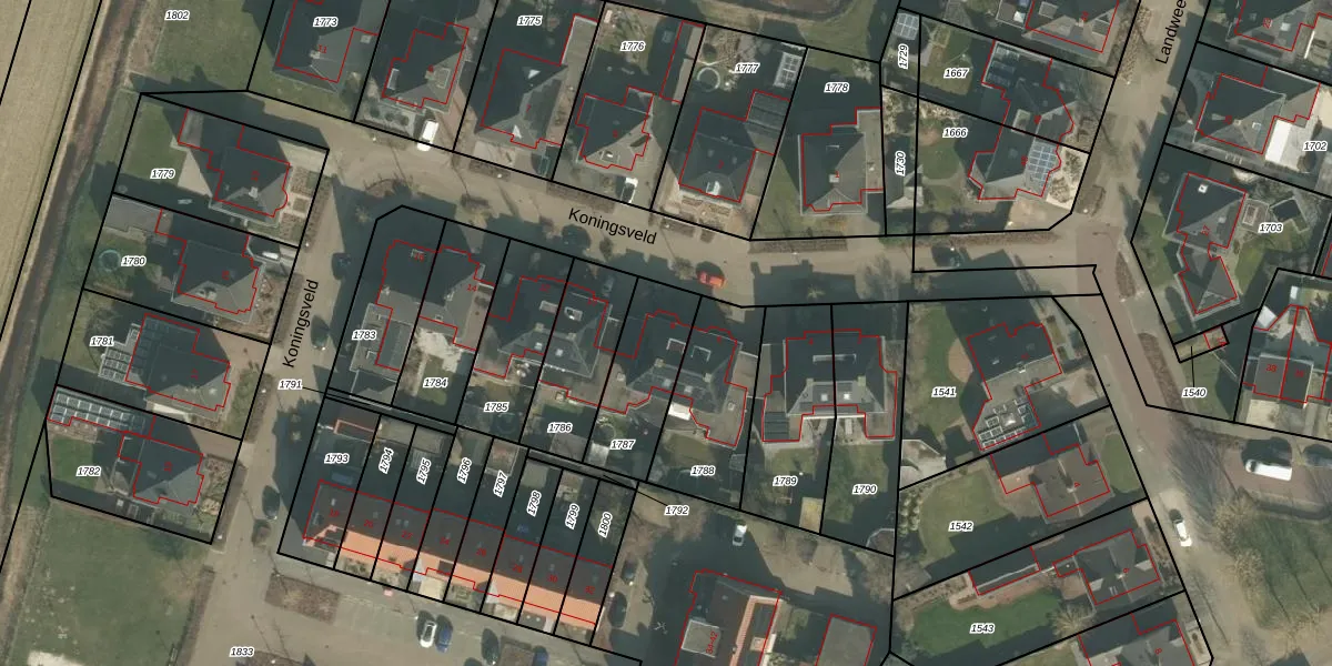 Het perceel waarop Koningsveld 8 staat heeft een oppervlakte van 292 m². Dit is een middelgroot perceel. De perceeloppervlakte wordt geregistreerd door het Kadaster. Gedetailleerde informatie over de maten van dit perceel kunt u vinden in het rapport Kadastrale kaart met maatvoering van Koningsveld 8.