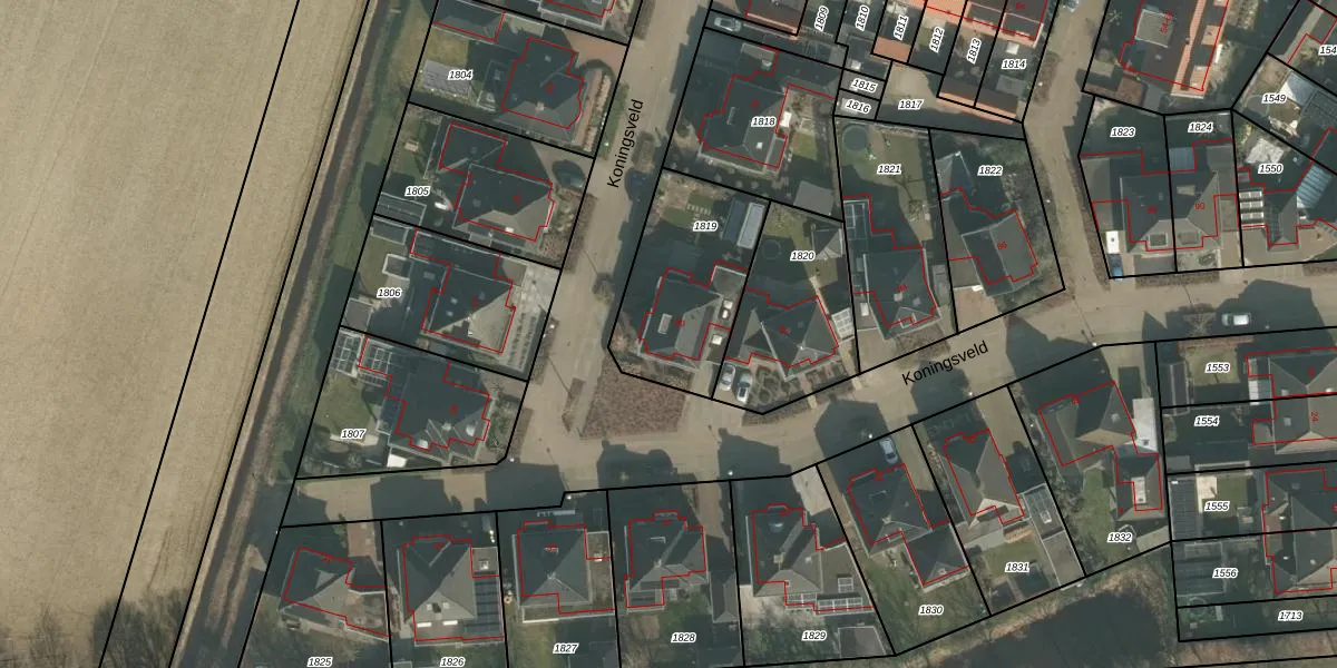 Koningsveld 80 is gelegen op kadastraal perceel ERP00P1819. Deze kadastrale aanduiding is uniek en wordt gebruikt door het Kadaster om eigendomsrechten en andere zakelijke rechten vast te leggen. Het perceel maakt onderdeel uit van de kadastrale gemeente Erp.