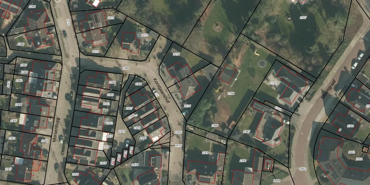 Gebruik de zoekbalk of klik op een perceel voor informatie over de adressen binnen dit perceel.