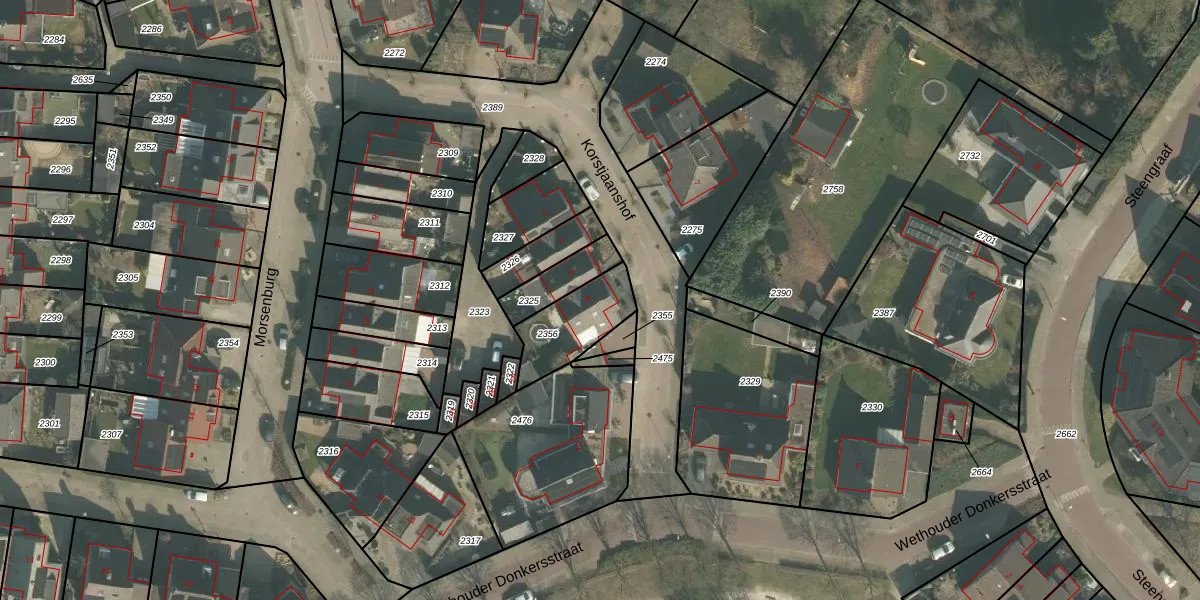 Gebruik de zoekbalk of klik op een perceel voor informatie over de adressen binnen dit perceel.
