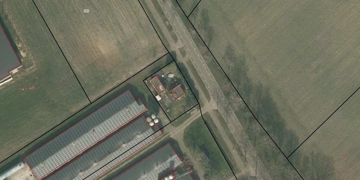 Het perceel waarop het adres ligt is ERP00-R-657. De afkorting 'ERP00' staat voor kadastrale gemeente Erp. Het perceel is 545 m² groot. Dat is kleiner dan de gemiddelde perceeloppervlakte in Erp, dat op 6390,36 m² ligt. De grootste perceeloppervlakte in de kadastrale gemeente is 1,05 km². De kleinste oppervlakte bedraagt 0 m². Er zijn 2 adressen aanwezig op het perceel. De huidige grenzen van het perceel zijn digitaal in de Basisregistratie Kadaster (BRK) geregistreerd op 08-06-2009.