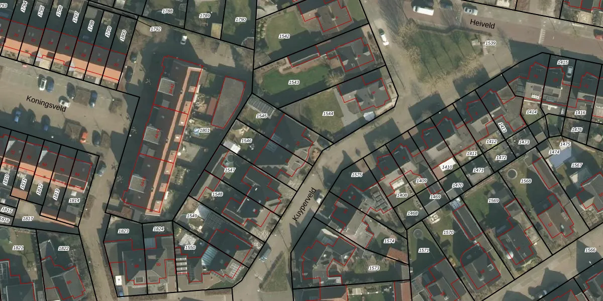 Kuyperveld 10 is gelegen op kadastraal perceel ERP00P1545. Deze kadastrale aanduiding is uniek en wordt gebruikt door het Kadaster om eigendomsrechten en andere zakelijke rechten vast te leggen. Het perceel maakt onderdeel uit van de kadastrale gemeente Erp.
