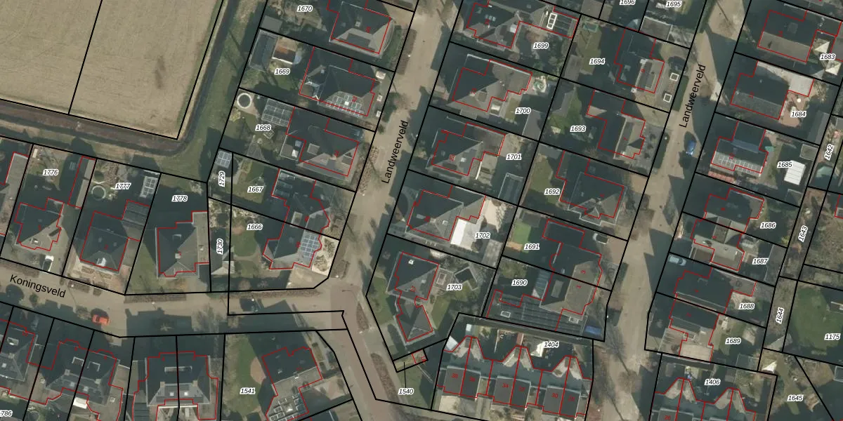 Het perceel waarop Landweerveld 25 staat heeft een oppervlakte van 441 m². Dit is een groot perceel. De perceeloppervlakte wordt geregistreerd door het Kadaster. Gedetailleerde informatie over de maten van dit perceel kunt u vinden in het rapport Kadastrale kaart met maatvoering van Landweerveld 25.