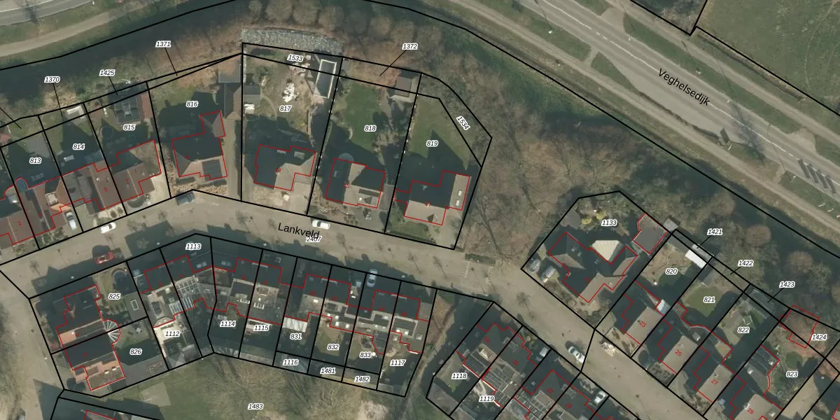 Het perceel waarop Lankveld 17 staat heeft een oppervlakte van 537 m². Dit is een groot perceel. De perceeloppervlakte wordt geregistreerd door het Kadaster. Gedetailleerde informatie over de maten van dit perceel kunt u vinden in het rapport Kadastrale kaart met maatvoering van Lankveld 17.