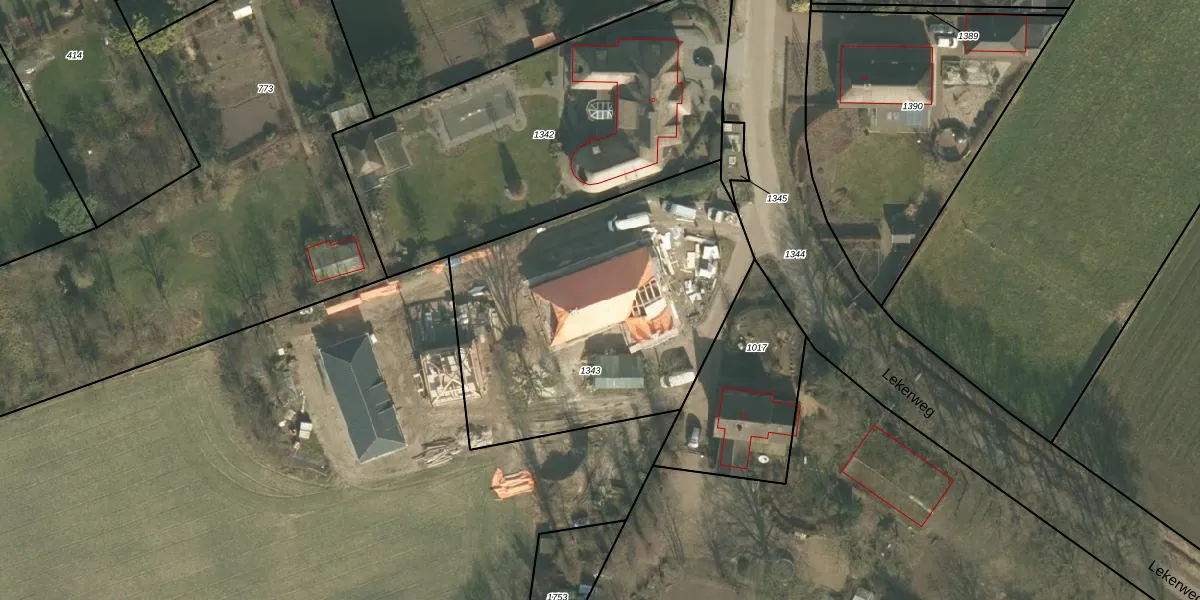 Lekerweg 8 is gelegen op kadastraal perceel ERP00S1343. Deze kadastrale aanduiding is uniek en wordt gebruikt door het Kadaster om eigendomsrechten en andere zakelijke rechten vast te leggen. Het perceel maakt onderdeel uit van de kadastrale gemeente Erp.