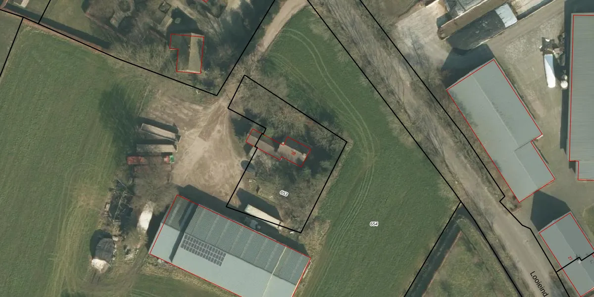 Looieind 32 is gelegen op kadastraal perceel ERP00R653. Deze kadastrale aanduiding is uniek en wordt gebruikt door het Kadaster om eigendomsrechten en andere zakelijke rechten vast te leggen. Het perceel maakt onderdeel uit van de kadastrale gemeente Erp.