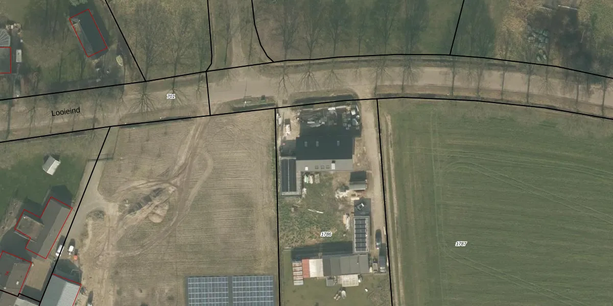 Looieind 4 is gelegen op kadastraal perceel ERP00R1786. Deze kadastrale aanduiding is uniek en wordt gebruikt door het Kadaster om eigendomsrechten en andere zakelijke rechten vast te leggen. Het perceel maakt onderdeel uit van de kadastrale gemeente Erp.